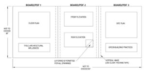 This sample entry board layout must be used. When opened, boards should measure no more than 36 inches tall by 90 inches wide. Digital submissions should follow the same layout. Layering is permitted for all drawings.